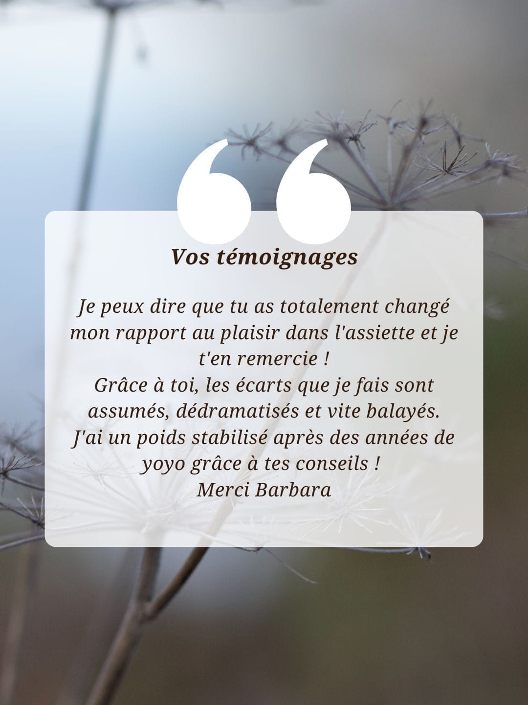 Pas à pas, tu avanceras vers une identité alimentaire alignée, stable et apaisée, où chaque repas devient un acte d’amour envers toi-même.