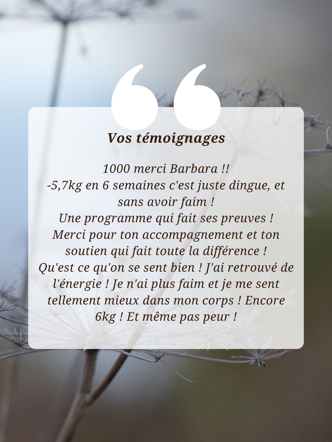 Tu accèdes à un plan alimentaire adapté, des conseils pratiques et une structure rassurante qui enlève la charge mentale et les frustrations.